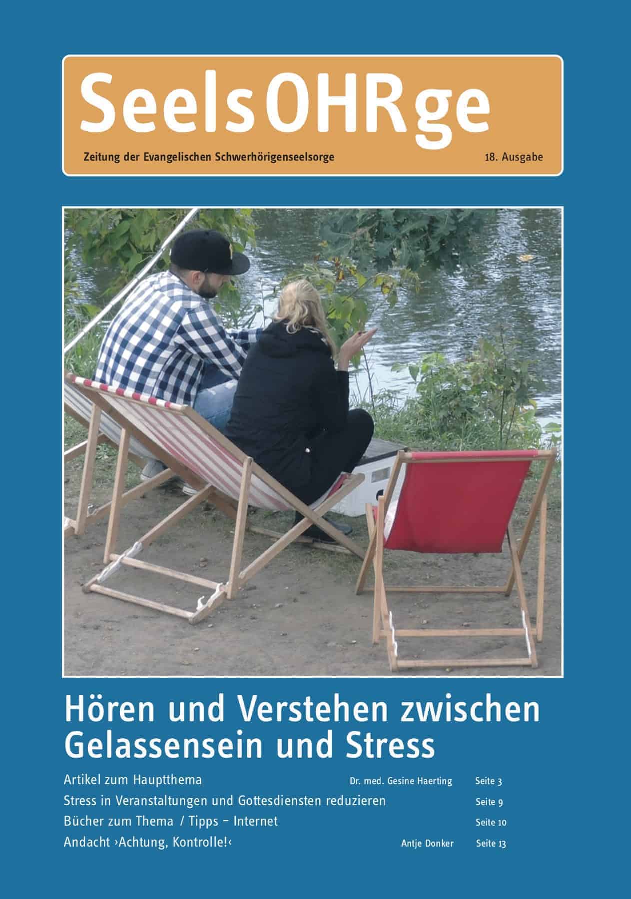 Evangelische Schwerhörigenseelsorge Zeitschrift SeelsOHRge, Ausgabe 24, mit zwei Menschen im Gespräc.
