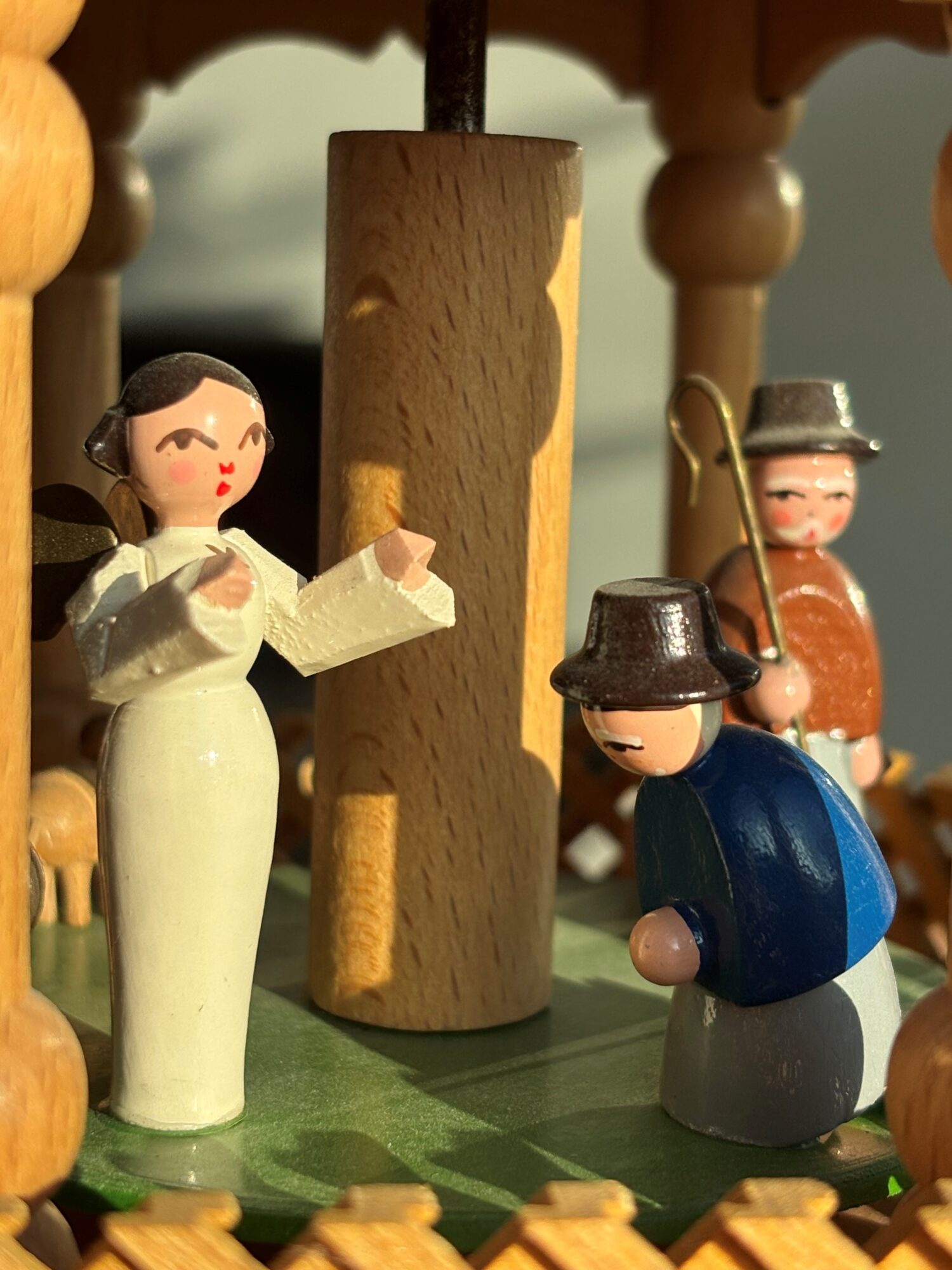 Es ist Heiligabend.Und ich gehe – wie jedes Jahr – mit meiner Mama zum Krippenspiel in unsere Klosterkirche.Ah ja, ich heiße Anna, und ich bin schwerhörig, und ich trage Hörgeräte.Immer, wenn ich mit Mama in die Kirche gehe, nimmt sie meine Funkmikrophonanlage mit.